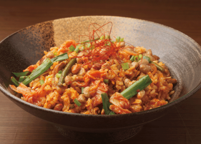 誰もが大好き!特製キムチのシャキシャキ感がたまらない旨辛炒飯。
